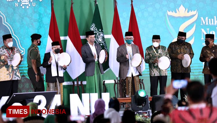 TIMES Palopo/Presiden Jokowi (Joko Widodo) membuka secara resmi Muktamar Ke-34 Nahdlatul Ulama di Pondok Pesantren Darussa’adah, Gunung Sugih, Lampung Tengah, Rabu (22/12/2021). (FOTO: Moh Ramli/TIMES Indonesia)