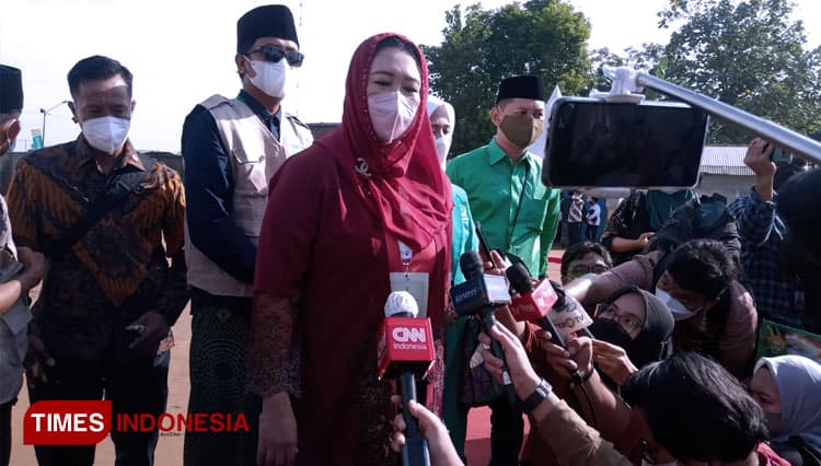 TIMES Palopo/Putri Abdurrahman Wahid (Gus Dur) Yeny Wahid saat diwawancarai oleh awak media. (FOTO: Moh Ramli/TIMES Indonesia)